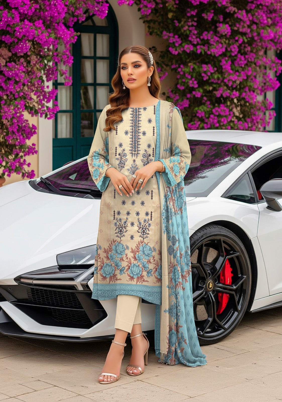 paired with a Stylish Printed Dupatta and Dyed Dhanak Trouser