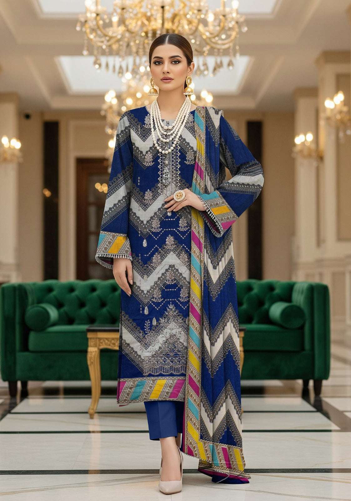 paired with a Stylish Printed Dupatta and Dyed Khaddar Trouser