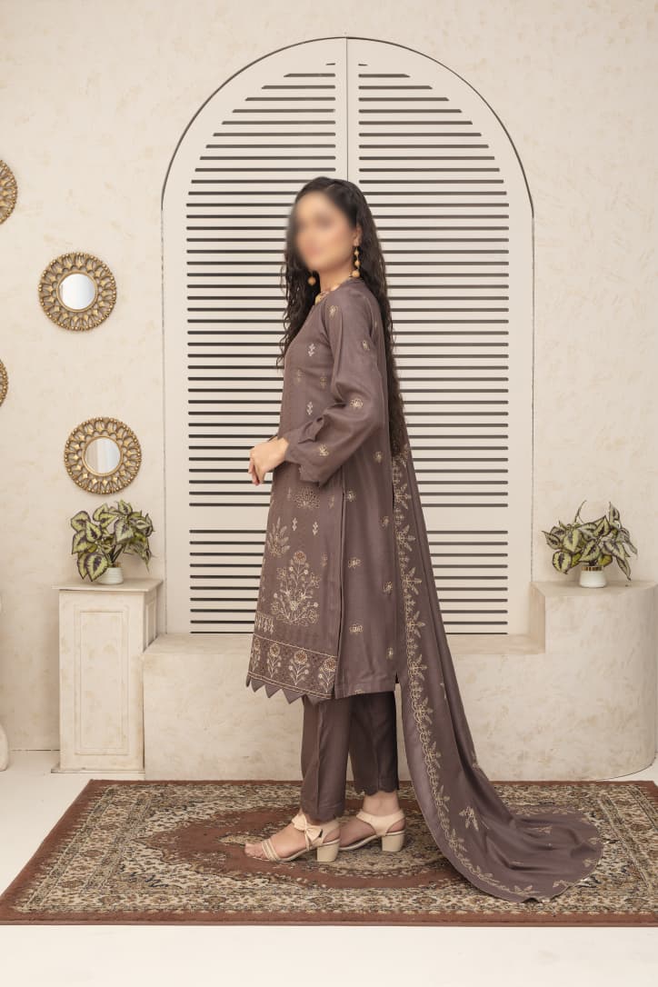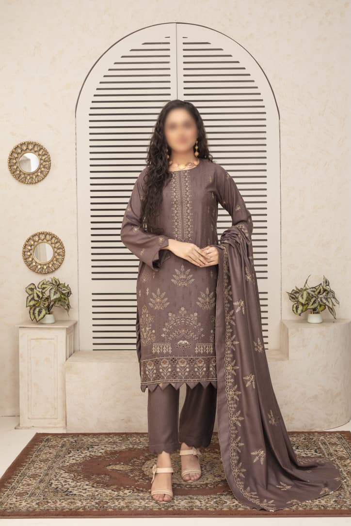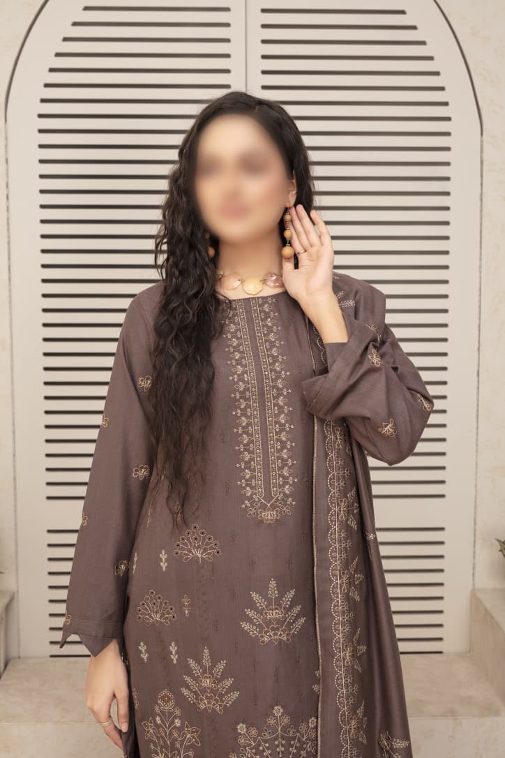 Experience luxury like never before with our premium collection. Featuring a Luxury Peach Leather Heavy Embroidered Shirt, Embroidered Shawl, and Comfort Dyed Trouser, this outfit is a statement of timeless elegance.